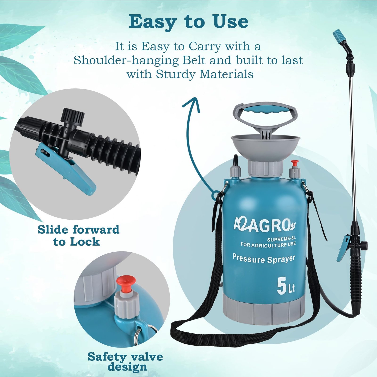- CAPACITY: 5-litre tank capacity with pressure spray mechanism perfect for gardening, cleaning, and agricultural applications