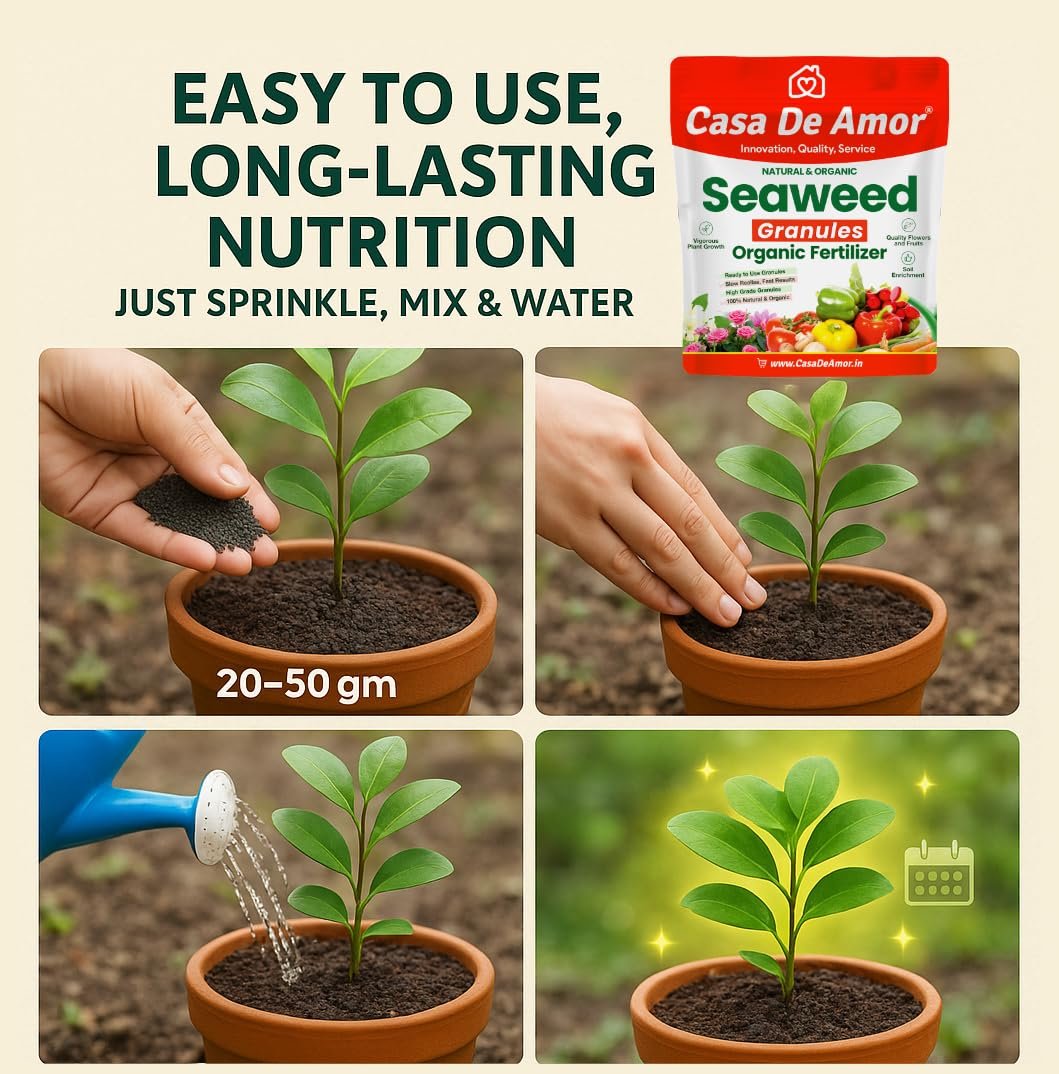 - ✅ Ready-to-Use Granules, Easy Application – High-grade seaweed granules; feed 20–50g per plant based on size. Mix in topsoil (1–2 inch) and water well after use.