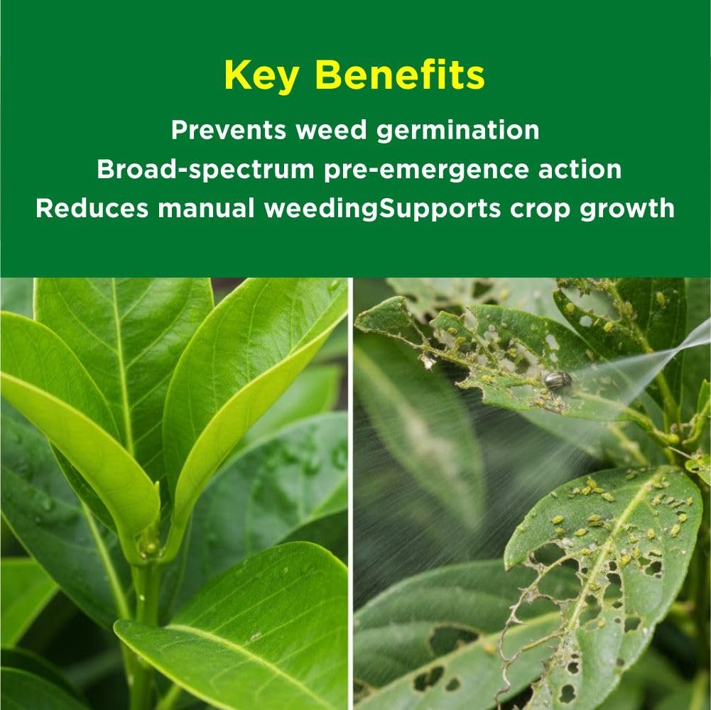 - ๐ ๐๐๐ง๐๐๐ข๐ญ๐ฌ: Shinobi provides rapid and long-lasting control of both grassy and broadleaf weeds, minimizing early-season competition. By maintaining a weed-free environment, it supports optimal crop growth, uniform emergence, and higher yields. Its targeted pre-emergence action reduces the need for post-emergence herbicide sprays, saving labor and resources while protecting crop health.