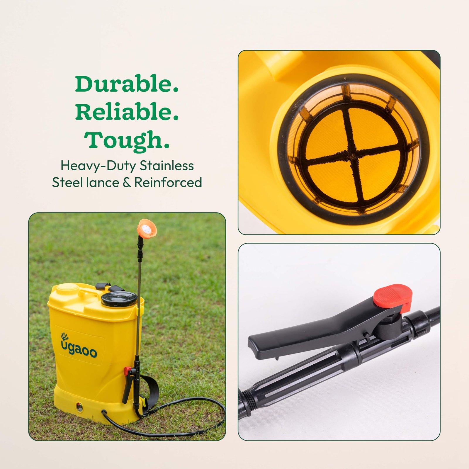 - 5️⃣ TRUSTED BY FARMERS – BUILT FOR INDIAN FIELDS The Ugaoo agriculture spray pump is crafted with a stainless steel telescopic lance and reinforced plastic trigger for durability and reliability. This battery sprayer for agriculture is rugged, long-lasting, and backed by Ugaoo quality – the best spray pump for agriculture trusted by Indian farmers.