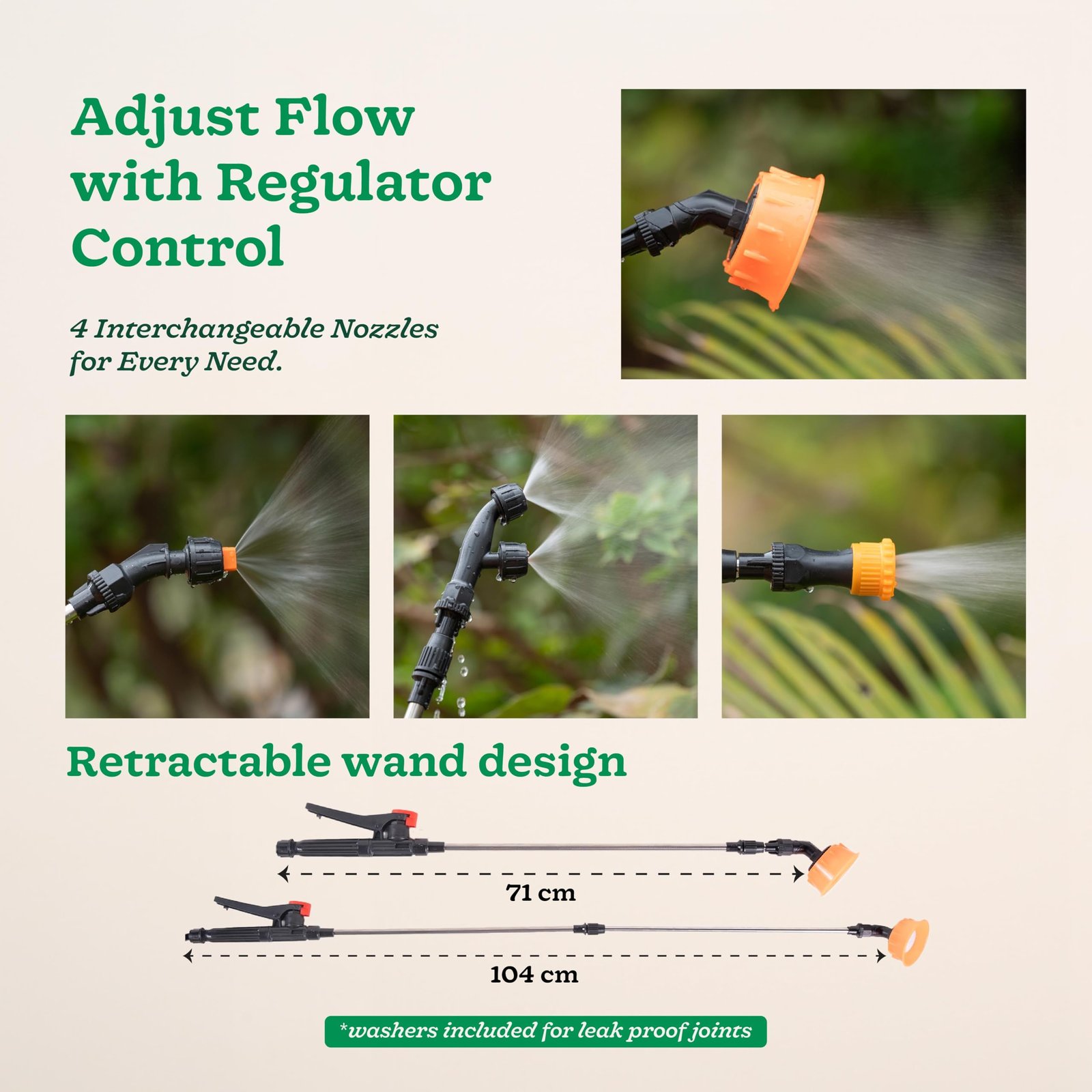 - 4️⃣ VERSATILE SPRAY CONTROL FOR EVERY FARM TASK The adjustable regulator allows precise control over flow, making this pesticide sprayer suitable for misting, heavy spraying, and fertilizer application. Includes 4 nozzles to switch easily between spray types – perfect as an all-in-one power sprayer for agriculture