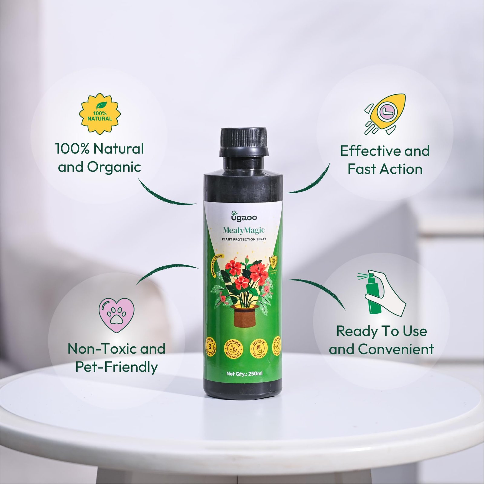 UGAOO MealyMagic Mealy Bug & Fungus Killer Spray For Plants – 100% Herbal Actives & No Chemicals – 250 ML