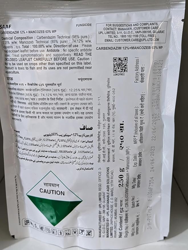 UPL STANDUPSAAF (Carbendazinm12% | Mancozeb63% WP | Mode of Action – Systemic and Contact) (250 gm), Multicolor